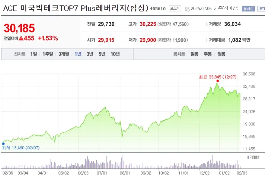 | 8위 | ACE 미국빅테크TOP7 Plus레버리지 | 35.32% |