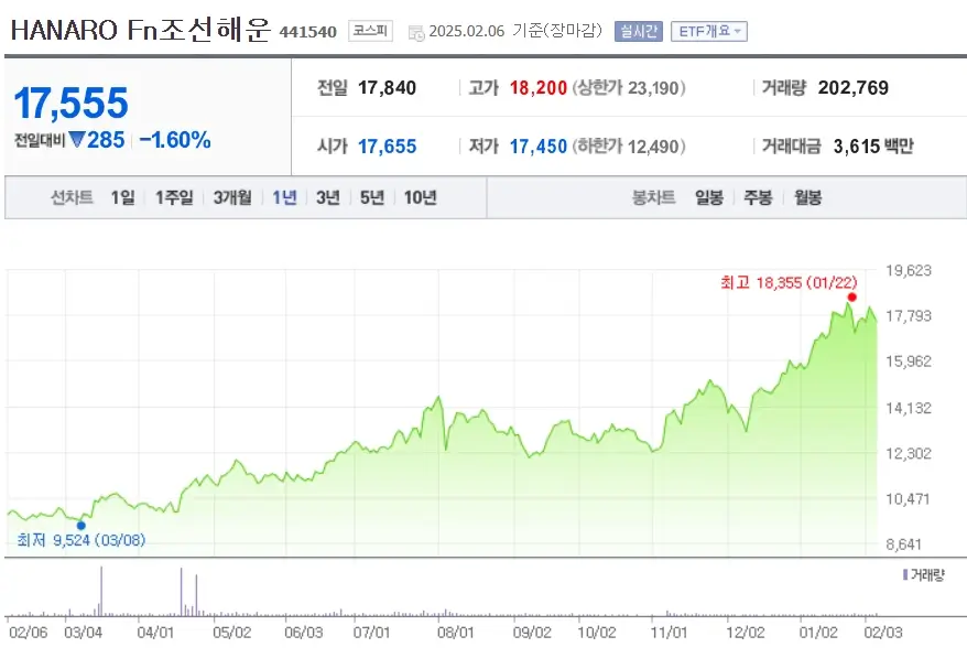 예를 들어, 지금 가장 핫한 ETF가 바로 조선업 관련 ETF죠. 글로벌 선박 발주가 증가하고, 조선업도 호황입니다. 친환경 선박 투자 증가로 중장기적으로도 긍정적이긴합니다.