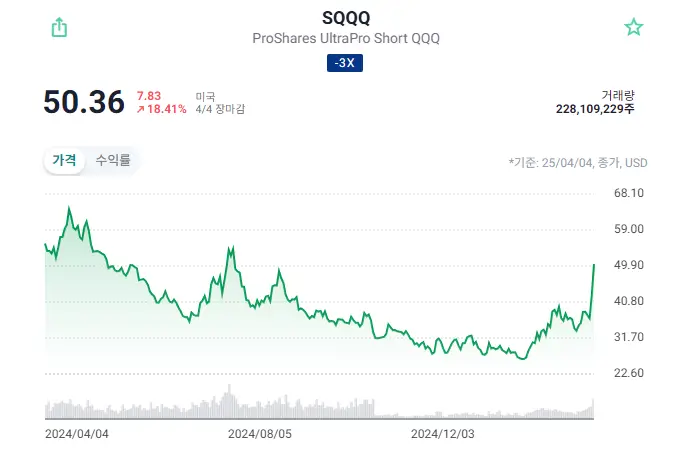 | SQQQ | ProShares UltraPro Short QQQ | 3배 인버스 | 단타용 고위험 고수익 |