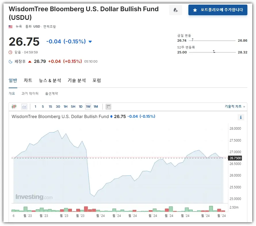 2. WisdomTree Bloomberg U.S. Dollar Bullish Fund (티커 : USDU)