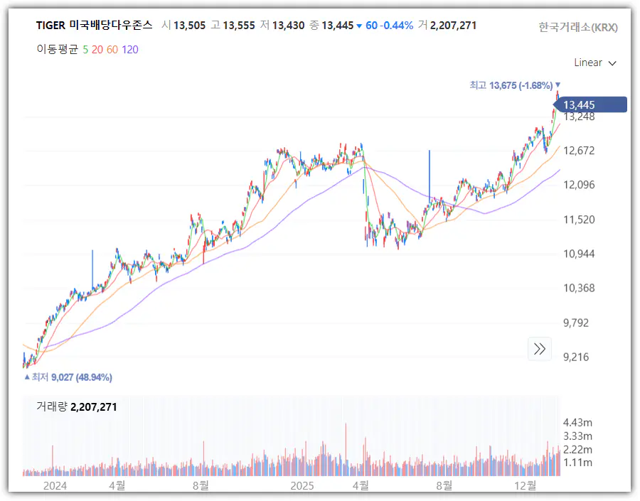 당장의 현금 흐름이 필요하신 분들에게는 미배당다우존스 ETF가 매력 없게 느껴질 수 있지만, 이 종목의 진가는 ‘성장’에 있습니다.