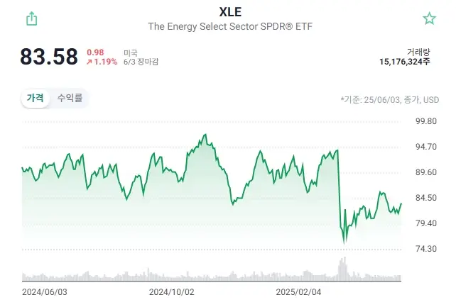 XLE는 대형 우량주 중심으로 구성되어 있어, 기업 실적이 안정적이고, 배당도 꾸준히 지급하며, 경기 침체에도 방어력이 강한 편입니다. 즉, 급등보다는 안정적인 흐름을 원하는 투자자에게 잘 맞는 상품입니다.