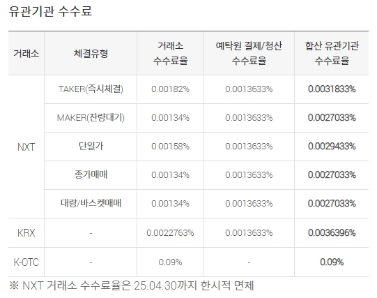여기에 유관기관 수수료가 붙습니다. 이는 증권사와는 별개로 거래소, 예탁원에 들어가는 돈입니다.