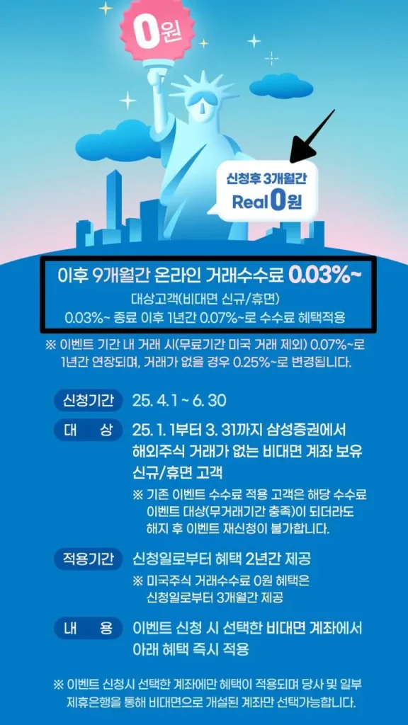 - 대상 : 2025년 1월 1일부터 3월 31일까지 삼성증권에서 해외주식 거래가 없는 비대면계좌 보유 신규/휴면 고객