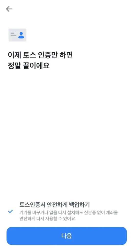 은행 계좌까지 연결했으면, ‘토스 인증’만 하면 계좌 개설이 완료 됩니다. 아래 화면이 떴으면 토스증권 계좌를 만드신겁니다.