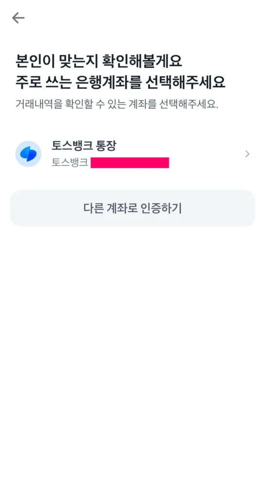 다음으로는 증권 계좌와 연동할 은행 계좌를 인증합니다. 저는 토스뱅크 계좌가 있어서 연결해줬고요. 자주 쓰는 다른 은행 계좌로 연동할 수 있으니 이건 편한 대로 선택하시면 됩니다.