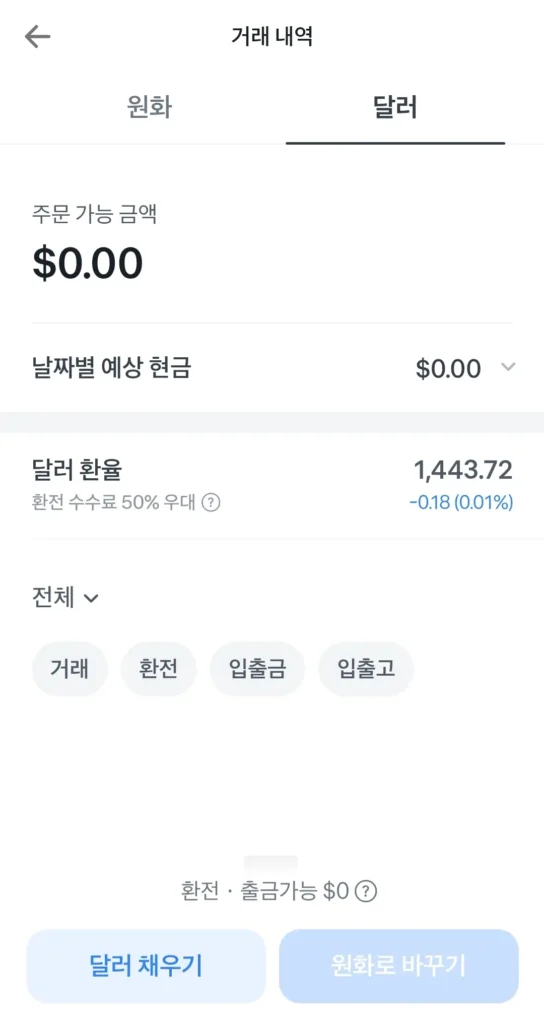 참고로, 토스증권에서는 실시간 환전과 예약 환전 모두 가능합니다. 원화를 달러로 환전 후, 달러로 매매하시면 됩니다. 환전 수수료는 0.23%입니다. 환율이 불리할 경우에는 원화 매매보다 환전 후 거래하는 게 더 유리할 수 있습니다.