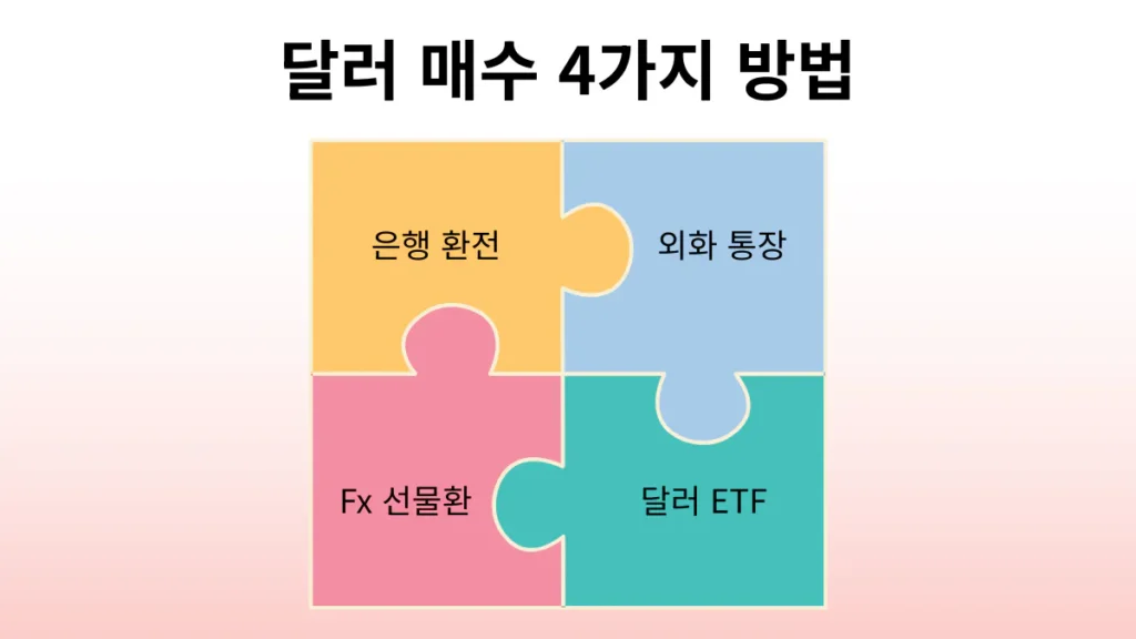 그래서 오늘은 달러 매수 방법 4가지 + ETF vs 실물 달러 비교를 가장 쉽게 이해할 수 있도록 정리해 드릴게요.
