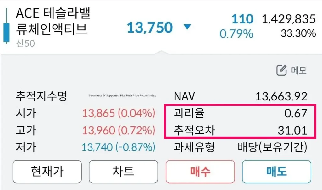 ACE 테슬라밸류체인액티브 ETF의 괴리율