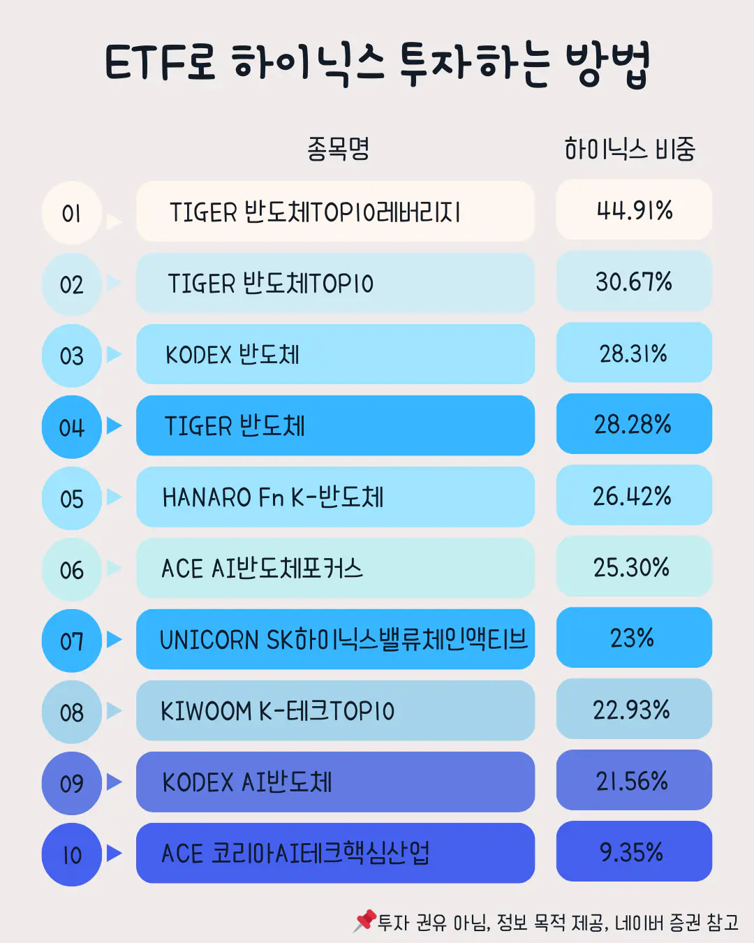 | 순위 | 종목명 | 하이닉스 비중 | 1주당 주가 | 특징 |