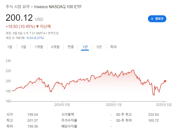 QQQ인베스코나스닥1001999년약 2,500억 달러0.20%