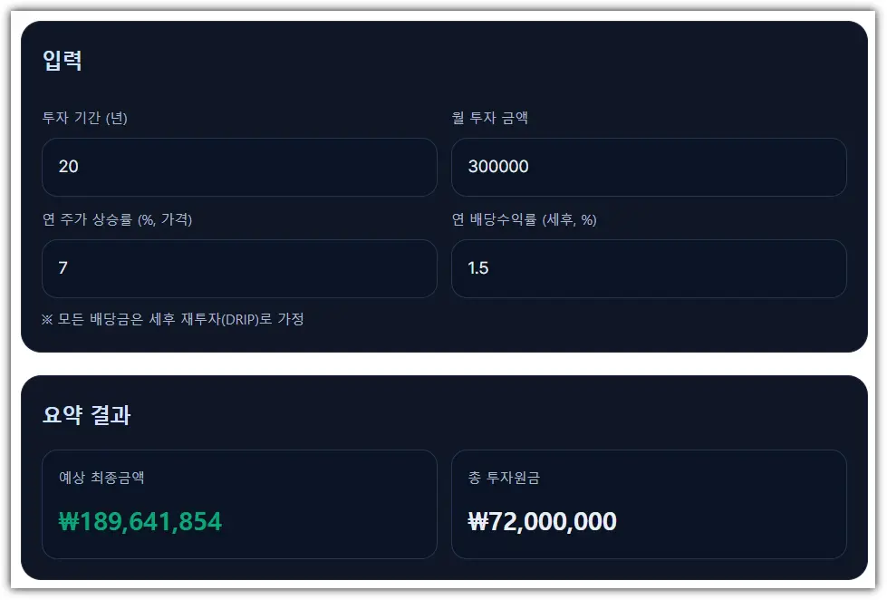 그런 분들을 위해, S&P500 ETF를 매달 30만 원씩 산다면 20년 뒤 얼마가 될지 계산을 직접 해보겠습니다.