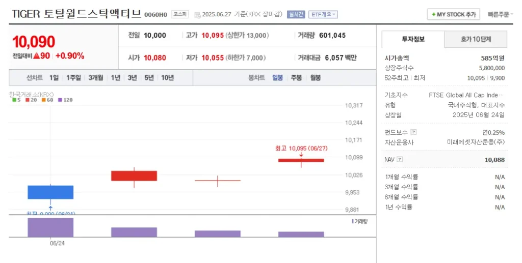 | 유동성이 상대적으로 낮을 수 있음 | VT는 미국 상장 대형 ETF라 유동성이 매우 높음. TIGER ETF는 초반에는 거래량이 낮을 수 있음 |